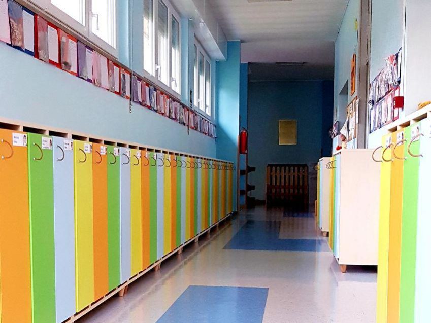 Per dare risposta alla legge “Salute pubblica”, abbiamo sostituito i vecchi appendini dei bambini con bellissimi e coloratissimi armadietti (2019).
